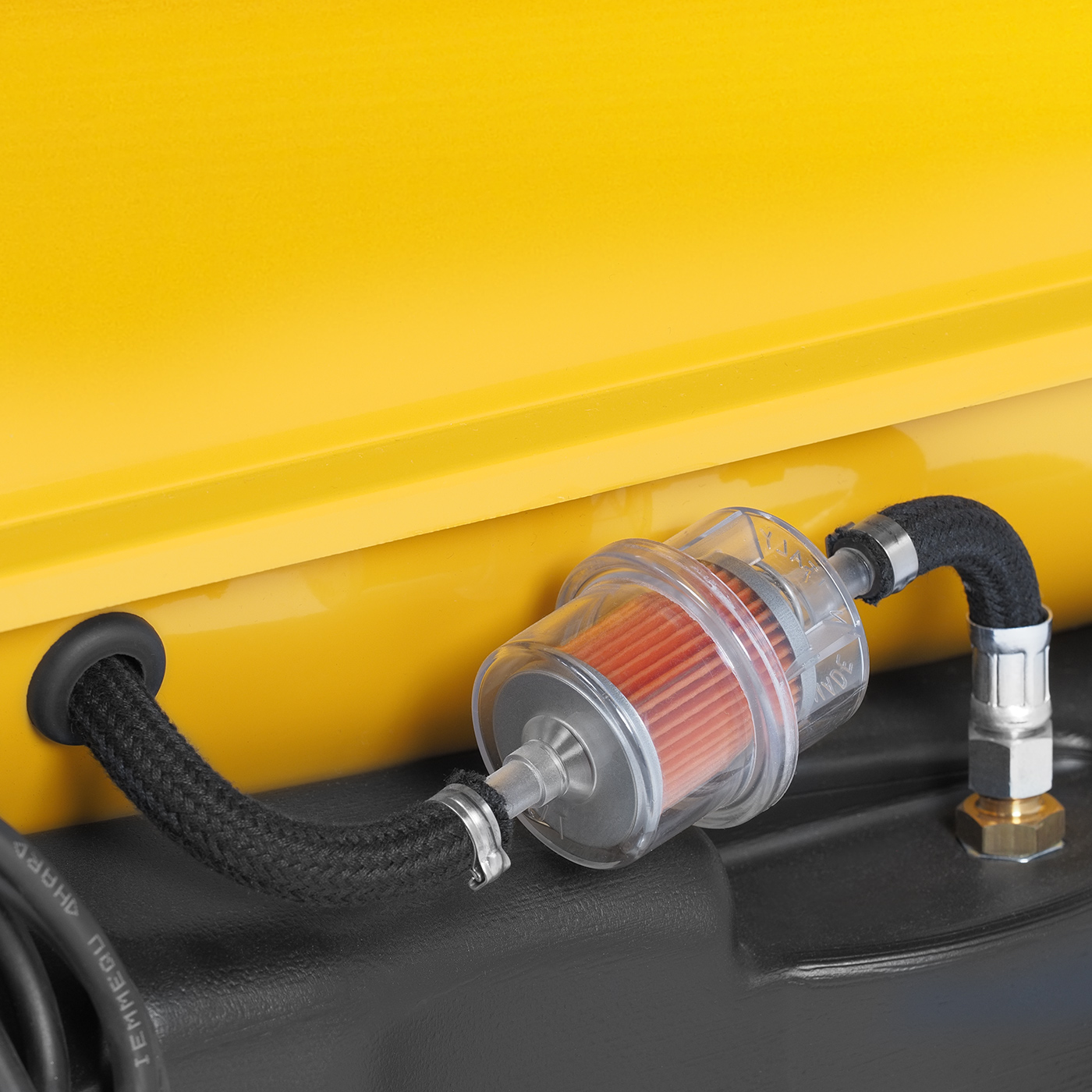 Zbog dizajna šasije s okvirom ručke i prednjim kotačima, ovaj profesionalni grijačna ulje može se koristiti fleksibilno i brzo se prenosi s jednog mjesta korištenja na drugo. Njegov integrirani spremnik goriva čini dodatnim vanjskim spremnicima ulja nepotrebnim.