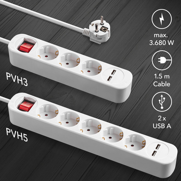 Produžne utičnice dostupne su u mnogo različitih dizajna i veličina kako bi zadovoljile sve potrebe. Postoje modeli za unutarnju upotrebu, poput naših bijelih PVH3 / PVH5 produžnih utičnica, koje su opremljene povećanom zaštitom od dodira, pa čak imaju i dva USB priključka tako da možete puniti svoje mobilne uređaje bez dodatnog adaptera za napajanje.