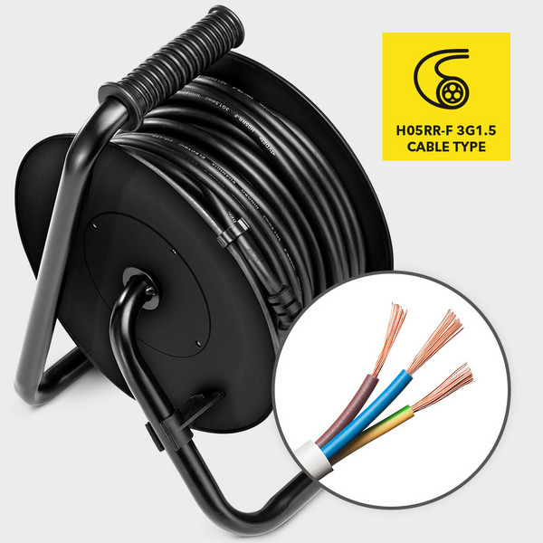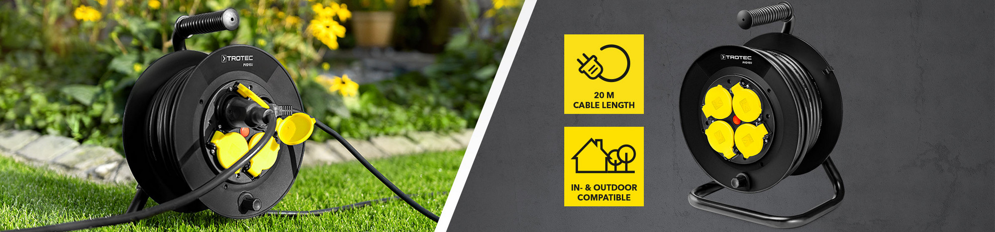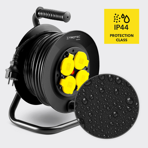 S priključnim kabelom duljine 20 metara nudi vrlo veliki radijus djelovanja. S maksimalnim priključnim opterećenjem od 3,2 kW na ukupno četiri uzemljene utičnice, PVD1EU s IP44 zaštitom (zaštita od prodora stranih predmeta (>1 mm) i prskanja vode) nudi vam ne samo sigurnu upotrebu u zatvorenom prostoru i zaštićenim vanjskim prostorima, već i vrlo veliki radijus djelovanja zahvaljujući priključnom kabelu duljine 20 metara. Bilo da se radi o električnim alatima, rasvjeti ili grijanju – u hobi radionici uvijek je potrebna snaga. Bilo da se radi o domu, vrtu ili radionici. Kabelski koluti također su opremljeni brojnim značajkama za veću udobnost i sigurnost korisnika.