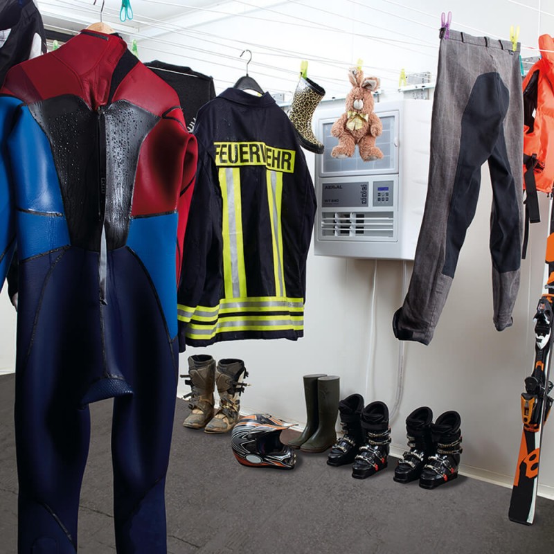 Sušenje rublja s jednom ili više konvencionalnih kućanskih sušilica vrlo je energetski zahtjevno. Radi uštede energije, ljeti se rublje može sušiti vani na svježem zraku. Ali što učiniti po lošem vremenu ili zimi? Sušionica opremljena AERIAL sušilicom rublja je pouzdana i ekološki prihvatljiva alternativa. Sušilica rublja za sobni zrak također se može koristiti kao odvlaživač čistog sobnog zraka. U ovom načinu rada prostorije se trajno održavaju suhima i uklanja se sva vlaga koja bi mogla biti prisutna u zidovima ili pohranjenim predmetima. Osim toga, trajno je spriječeno stvaranje plijesni te šteta po imovinu i zdravlje uzrokovana prekomjernom vlagom. Jedinstveni sustav filtra za zrak posebno se lako uklanja i može se čistiti vodom ili ručno.