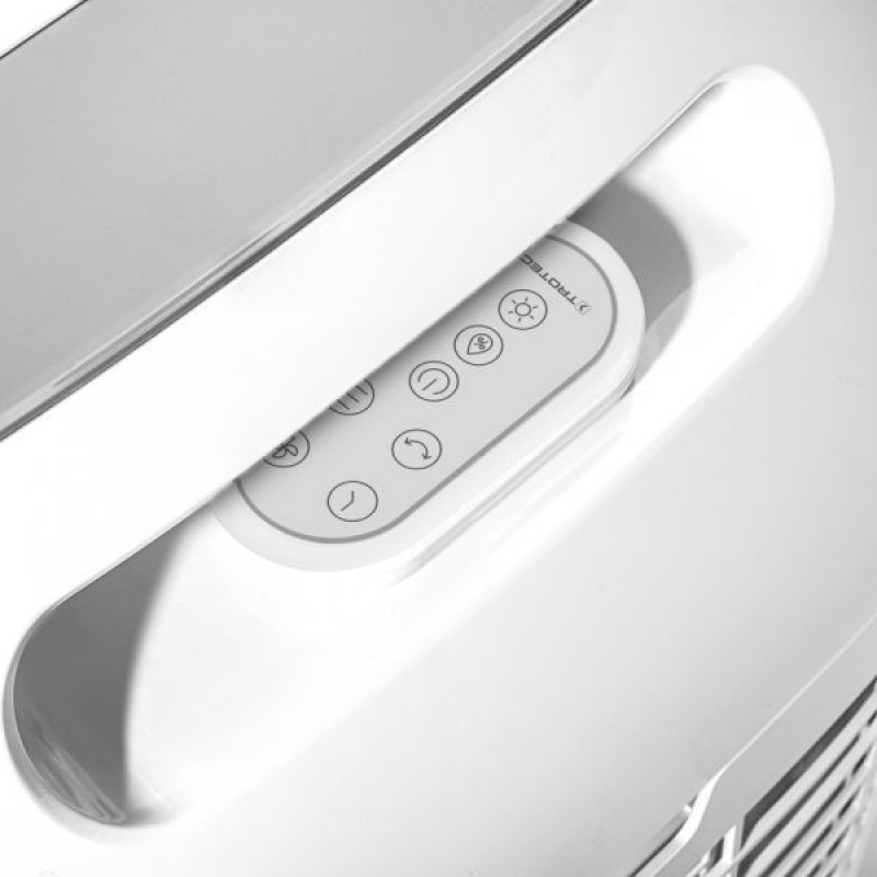 Ledeni vjetar za vruće ljetne daneElegantni rashlađivač zraka PAE 40 s prikladnim daljinskim upravljačem veoma je svestran. U vrućim ljetnim danima, elegantni bijeli komforni uređaj začas hladi zagrijanu sobnu temperaturu, pruža ugodnu svježinu na koži, a također vlaži i sobni zrak. Uz to, zrak se čisti u integriranom zračnom filteru i, ako je potrebno, ionizacijom , kako bi se iz zraka u sobi uklonili neugodni mirisi i zagađivači poput bakterija. Optimalni uvjeti za zdravu klimu u dnevnoj sobi kako bi se osjećali dobro i ugodno.Prirodno hlađenje isparavanjem - bez kemikalija i crijeva za ispušni zrak