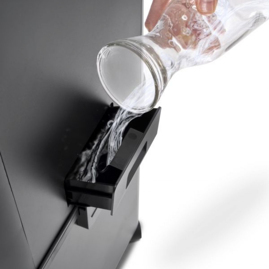 S jasno vidljivim indikatorom razine na prvi pogled možete vidjeti ima li još uvijek dovoljno vode u velikom spremniku od 60 litara, koji se brzo i lako čisti. Kad je spremnik za vodu prazan, pumpa za vodu automatski se isključuje, dok ventilator nastavlja raditi kako bi osvježio zrak. Uređaj signalizira paljenjem LED diode i zvučnim signalom da spremnik za vodu treba napuniti. Postoje 3 različita načina da ga napunite lako i povoljno.