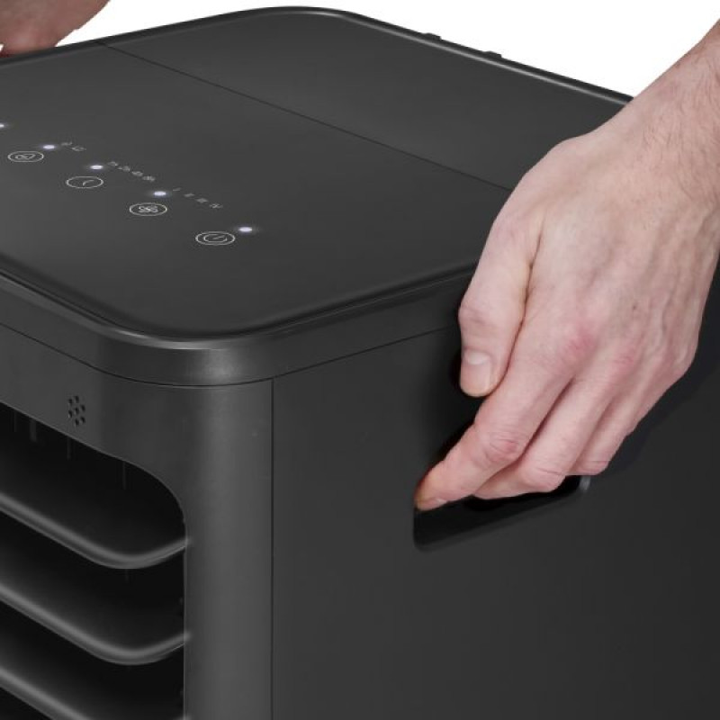 Aircooler PAE 80 s daljinskim upravljačem osigurava svjež vjetar i brzo hlađenje po ljetnoj vrućini. Boja kućišta u crnoj boji je u trendu, što također čini da se PAE hladnjak zraka ističe od mnoštva. PAE 80 predstavlja se savršeno elegantno sa svojom svilenkasto mat crnom površinom. 4-u-1 hladnjak zraka (zračno hlađenje, ventilacija, pročišćavanje i vlaženje zraka) sjaji snažnim efektom hlađenja zahvaljujući ledenom protoku svježeg zraka. Podesivi ventilator u četiri stupnja hladi grijane dnevne sobe, zimske vrtove, stanove u potkrovlju, prodajne sobe, trgovine, restorane, urede i još mnogo toga. turbo-brzo do ugodnih sobnih temperatura. Uz to, hladnjaci zraka čiste i vlaže sobni zrak kako bi vas razmazili čistim i optimalno vlaženim hladnim zrakom.