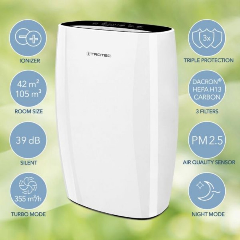 Što je veće onečišćenje zraka, na primjer na prometnim ulicama, to će primjetniji utjecaji na performanse i dobrobit biti u svakodnevnom životu. Zahvaljujući svojoj jedinstvenoj 3-slojnoj HEPA tehnologiji filtra, AirgoClean® 150 E nudi visoku razinu zaštite od patogenih mikročestica kako bi pouzdano uklonio onečišćenja zraka u području mikrometara iz zraka u sobi.