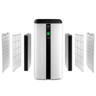 Oblikovani pročišćivač zraka u kockastom dizajnu kombinira vizualnu eleganciju, izvanrednu funkcionalnost i visoko učinkovitu tehnologiju HEPA filtera najnovije generacije. Važni parametri sobnog zraka kao što su temperatura, vlažnost, onečišćenje finom prašinom i kvaliteta zraka mjere se u stvarnom vremenu i prikazuju na lako čitljiv način. Funkcionalnost AirgoClean® 350 E, koja je izvanredna u ovoj klasi uređaja, upotpunjena je s dva načina rada (automatski način rada s detekcijom svjetla i noćni način rada), indikatorom promjene filtera, bravom za djecu, praktičnim IR daljinskim upravljačem i programibilni 24-satni mjerač vremena.
