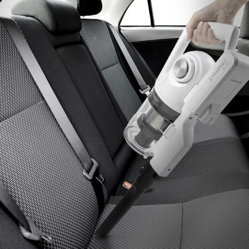 Bežični usisavači,kao mali ručni usisavač, predodređen je za čišćenje stolova, stolica, autosjedalica, tapeciranog namještaja, tipkovnica ili radnih površina u kuhinji - idealno primjerice za pelud,dlake, prašinu, mrvice ili životinjsku dlaku . Da biste očistili sobu, jednostavno spojite ručni usisavač na usisnu cijev od mat aluminija koja je uključena u set i imate odgovarajući alat u veličini od 111 cm. S produžetkom ručke lako usisavate ispod namještaja ili na teško dostupnim mjestima poput stropa - težina samo 1,5 kg.