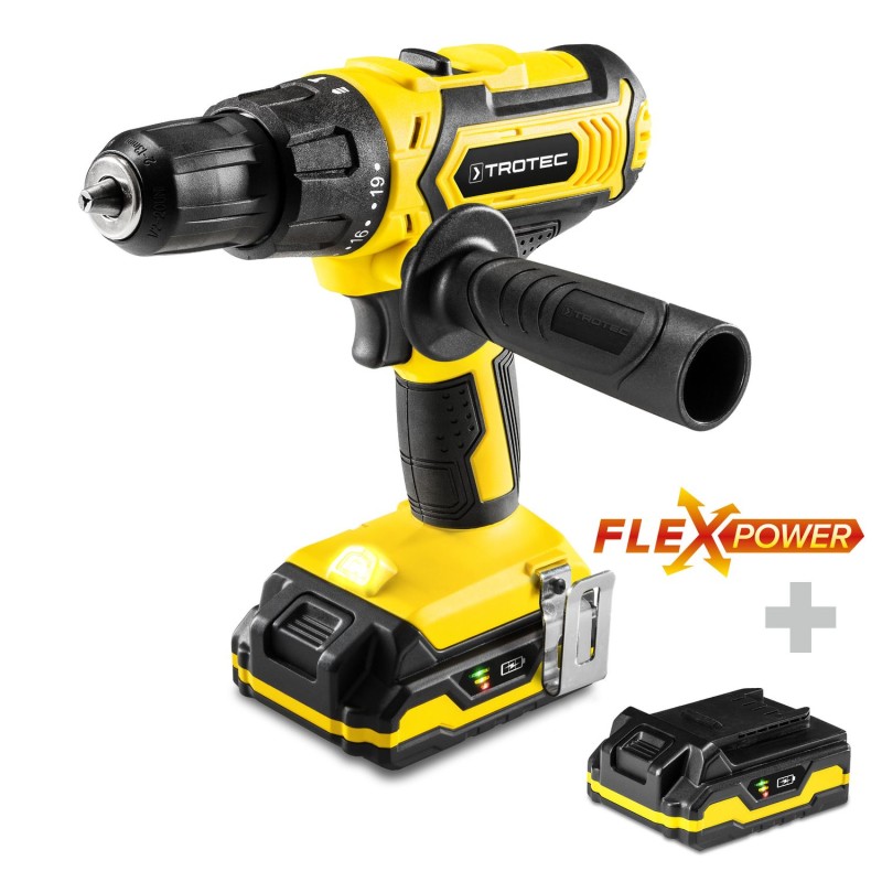 Flexpower – inovativni sistem multi baterija od Trotec-aFlexpower-Multiakku može se fleksibilno kombinirati s različitim Trotec alatima, pokraj akumulatorske bušilice PHDS 10-20V, naprimjer također s akumulatorskom bušilicom izvijačem PSCS 10-20V ili ubodnom pilom PJSS 10-20V i sa mnogo budućih Trotec alata. S Flexpower uštedjeti ćete bespotrebnu potragu za savršenim baterijama i punjačima.