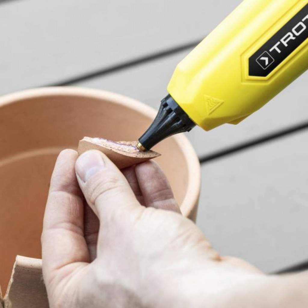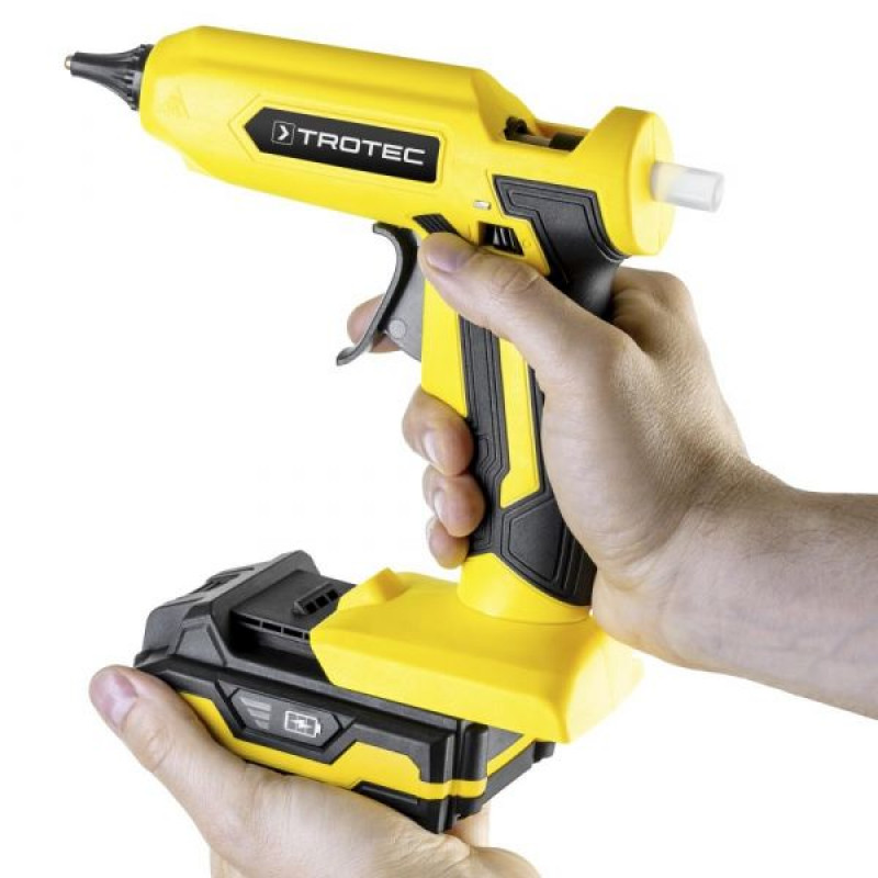 Bežični pištolj za vruće ljepilo zagrijava i ukapava umetnute ubodne ljepljive štapiće u najkraćem mogućem roku i omogućuje brzo i precizno nanošenje ljepila. Ljepilo se hladi i stvrdnjava jednako brzo kao što se zagrijava. Rezultat: čvrsta veza s visokim prianjanjem.