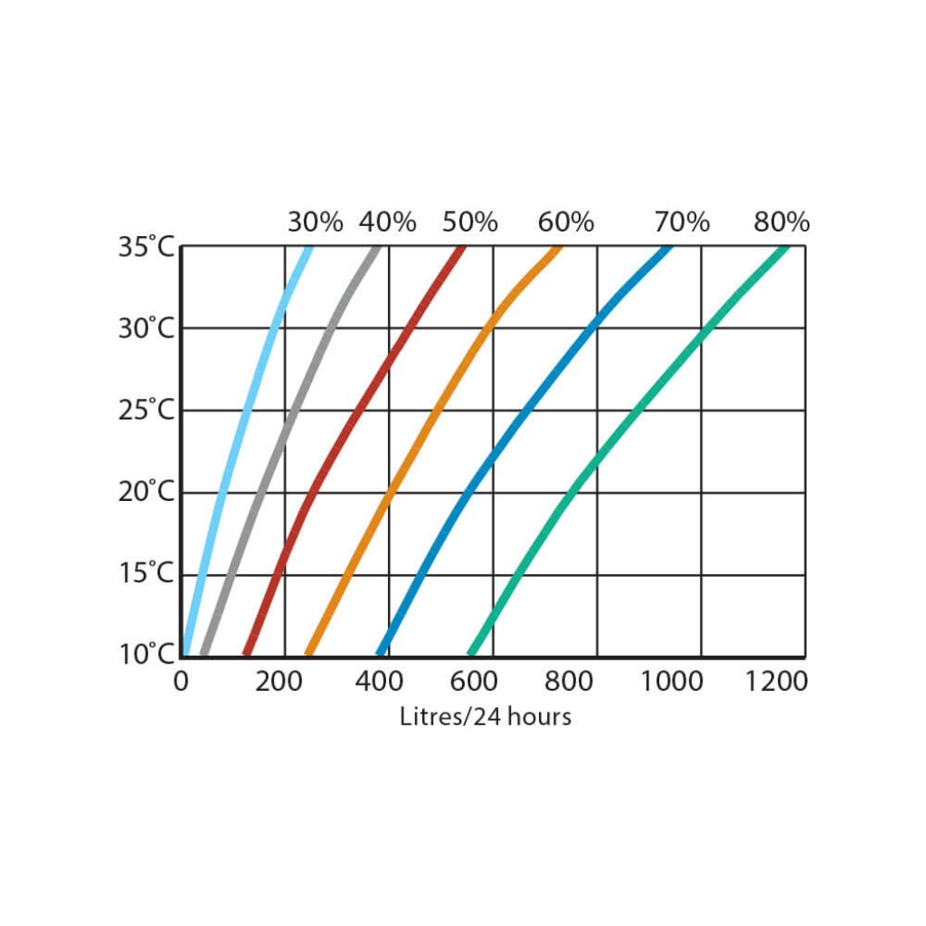 | Učinkovitost odvlaživanja na 30°C/60% r.v. | l/24h | 600 |