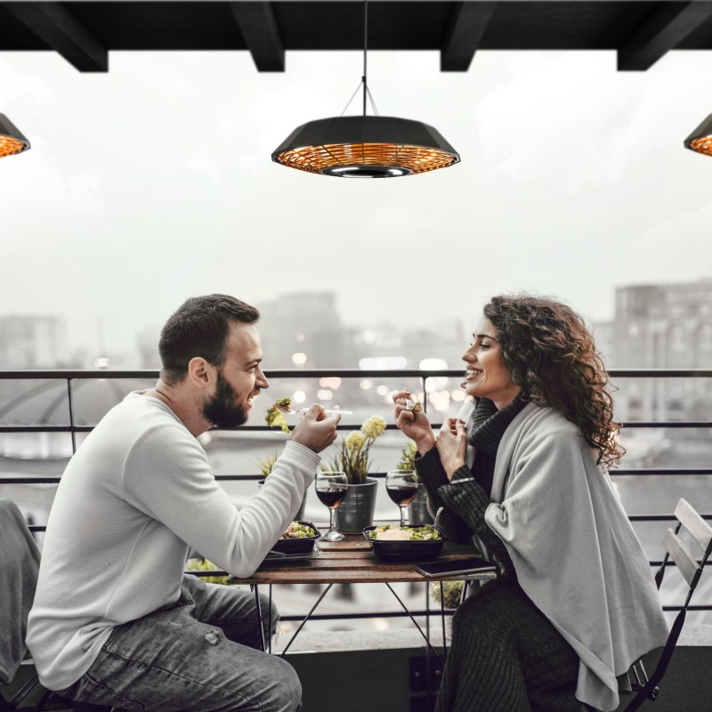 100-postotna stropna grijalica otporna na kišu IR 2010 SC izrađena od aluminija premazanog prahom, u skladu sa klasom zaštite IP45, objedinjuje sve što gastronomski profesionalci očekuju od rješenja za grijanje restorana na otvorenom. Njegov jednako privlačan i robustan dizajn, jednostavnost korištenja s daljinskim upravljanjem i visoka učinkovitost infracrvene tehnologije grijanja čine grijač zračenjem ekonomski atraktivnim izvorom grijanja za nenatkrivene vanjske prostore restorana, kafića, barova, kamiona s hranom ili događanja. Sezona na otvorenom počinje ranije i dulje osigurava zamjetan porast prodaje.