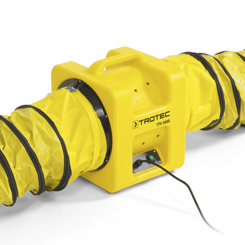 Zahvaljujući mogućnosti pričvršćivanja crijeva za transport zraka s obje strane, TTV 3000 je idealan za dovod svježeg zraka ili odvod zraka. S opcijski dostupnom vrećicom za prašinu dužine 3 metra, TTV 3000 se također može koristiti za usisavanje prašine.