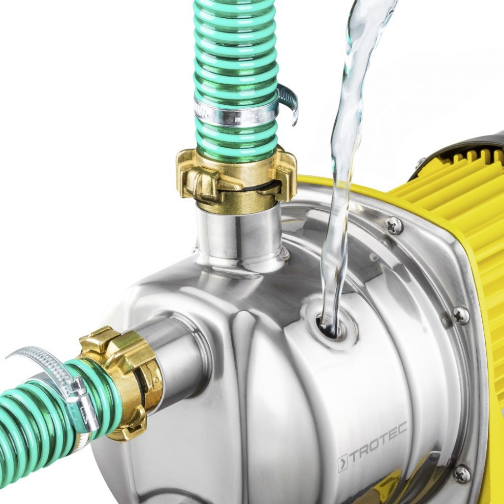 Kućni vodovod od nehrđajućeg čelika od 1000 vata pumpa do 3.300 litara bistre procesne vode s dubine do 7 metara. Glava do 30 metara osigurava dovoljan pritisak vode čak i na višim katovima. Crpka lako prolazi bilo koje čestice veličine do 2 mm u vodi. I usisni i tlačni priključak imaju unutarnji navoj promjera 1 “ili 2,54 cm. 19-litarska posuda pod tlakom od nehrđajućeg čelika osigurava stalan pritisak vode, čak i kada crpka ne radi. Integrirani tlačni prekidač nadzire tlak u kotlu i uključuje crpku tek kad tlak u spremniku padne ispod 1,5 bara, ili ga isključi kad je tlak od 3 bara ponovo dostupan. Uređaj se uključuje i isključuje preko lako dostupnog prekidača sa zaštitnim poklopcem.