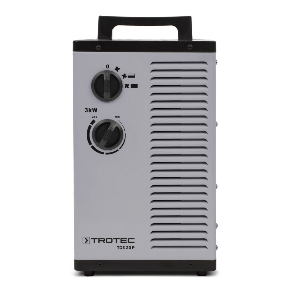 Zahvaljujući integriranom upravljanju termostata, kod TDS 20 P upravljanje je jednostavno i komforno. U automatskom načinu rada fino podešavanje vrši se preko dva preklopna stupnja grijanja s 2 i 3 kW snage. Na raspolaganju je i faza hladnog zraka za ventilaciju prostorije bez grijanja.