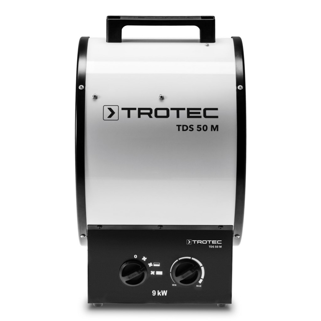 Željena temperatura na TDS 50 M može se podesiti beskonačno i po potrebi preko integriranog termostata. Za veću točnu toplinu, učinak grijanja se može u dvije razine do 9 kW povećati. Ventilator može raditi i bez funkcije grijanja u smislu ventilatora.