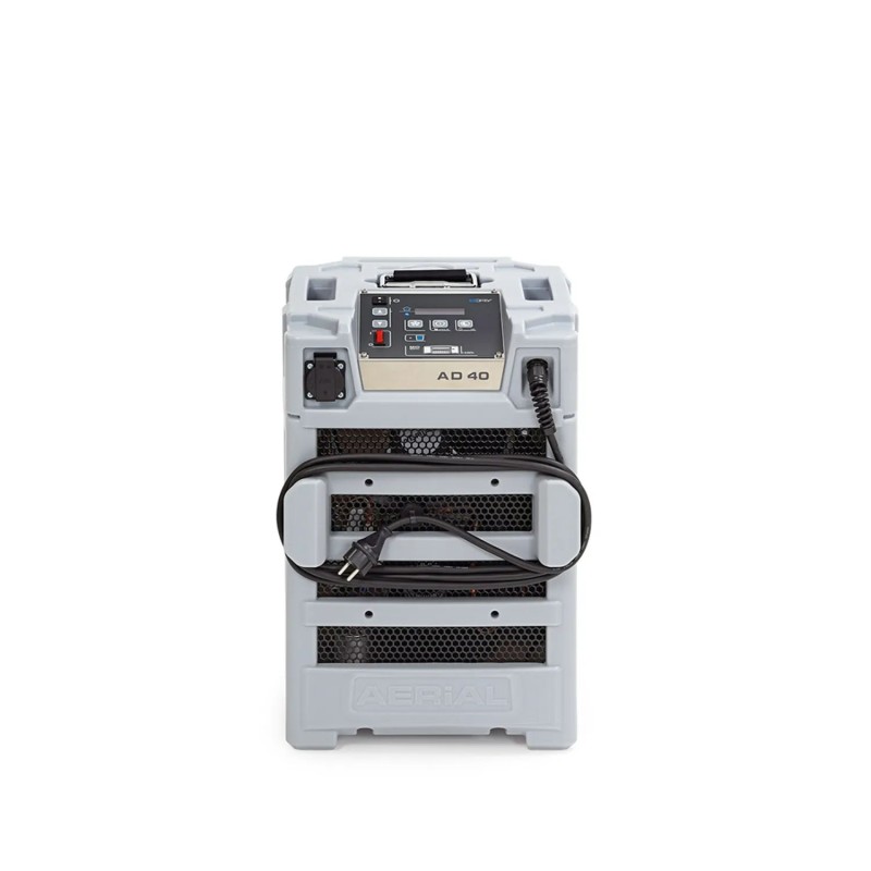 Aerial AD 40 je učinkovit odvlaživač zraka s kapacitetom odvlaživanja od 33,5 litara dnevno (30°C/80% relativne vlažnosti) i idealan je za prostorije do 180 m² ili 450 m³. S mjeračem energije u skladu s MID-om, odmrzavanjem vrućim plinom, noćnim načinom rada i težinom od samo 25 kg, ovaj odvlaživač zraka kombinira profesionalne performanse s ergonomskim rukovanjem. Idealan je za sanaciju štete od vode, sušenje podruma i sušenje novogradnje do 120 m².