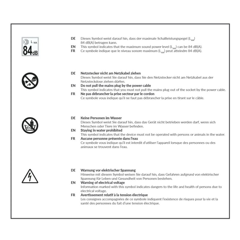 | Razina zvučne snage [dB(A)] | 84 |