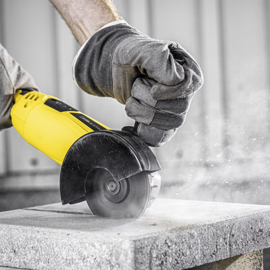 Brzo prilagođavanje omogućuje vam da postavite kut zaštite diska i četke tako da učinkovito možete spriječiti ozljede od slučajnog kontakta sa fleksibilnim diskom ili fragmentima i iskru letećeg diska. Kako bi se smanjio rizik od slučajne ili neovlaštene uporabe, prekidač za uključivanje i isključivanje dodatno je osiguran prekidačem za isključivanje. Gumeni kabl od 3 m i robustan gumeni kabel osigurava veliki radijus djelovanja i upotpunjava praktične značajke kutne brusilice.