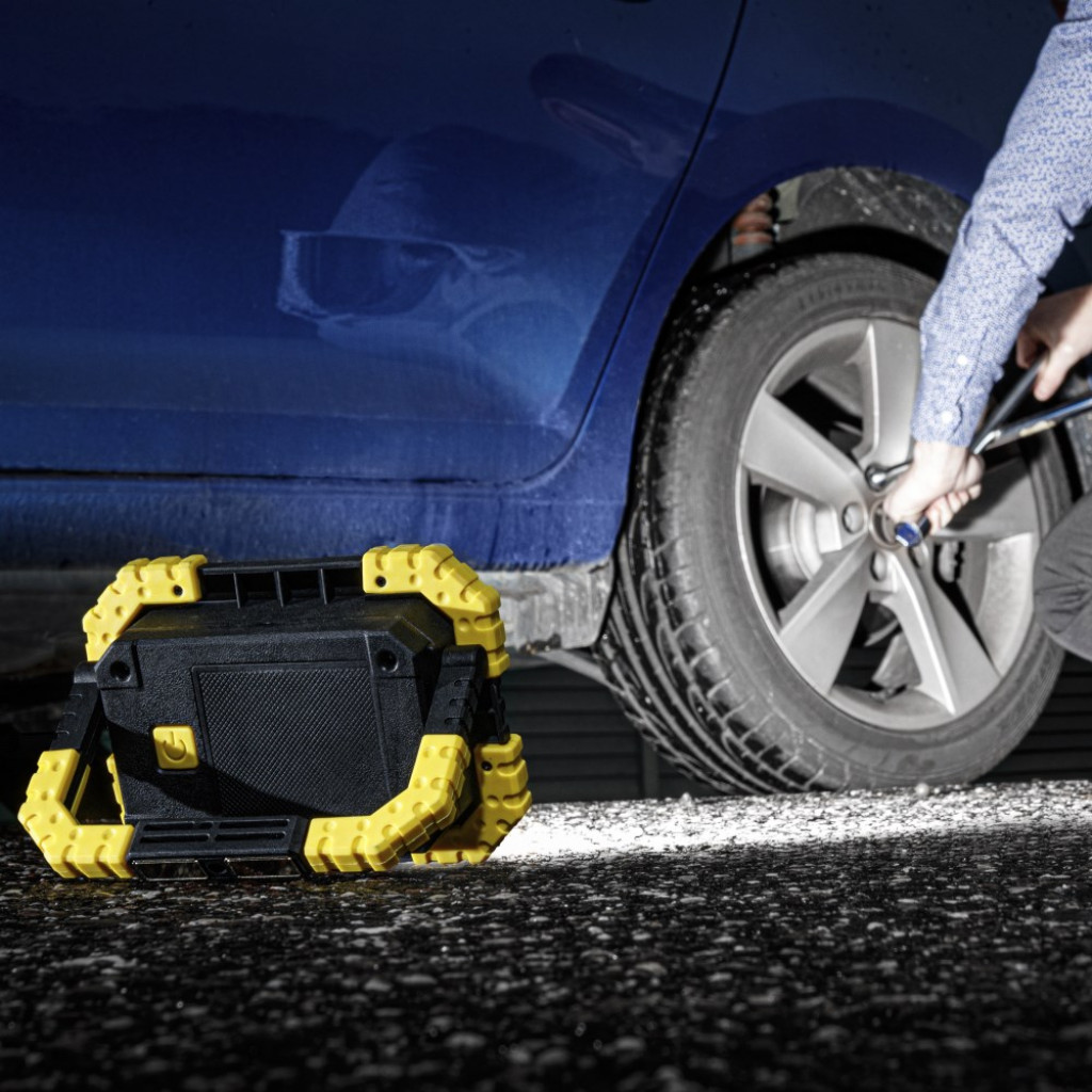 Dizajnirana za teška okruženja, IP44 svjetiljka otporna na prskanje ima zaštitu od udara. Praktično: Ručka za nošenje, koja se može podesiti za 180 °, ujedno služi i kao stabilna podloga za precizno osvjetljavanje radnog područja. Ova varijabilnost nadopunjena je snažnim magnetskim držačem - idealnim za sigurno pričvršćivanje radne svjetiljke na metalne površine.