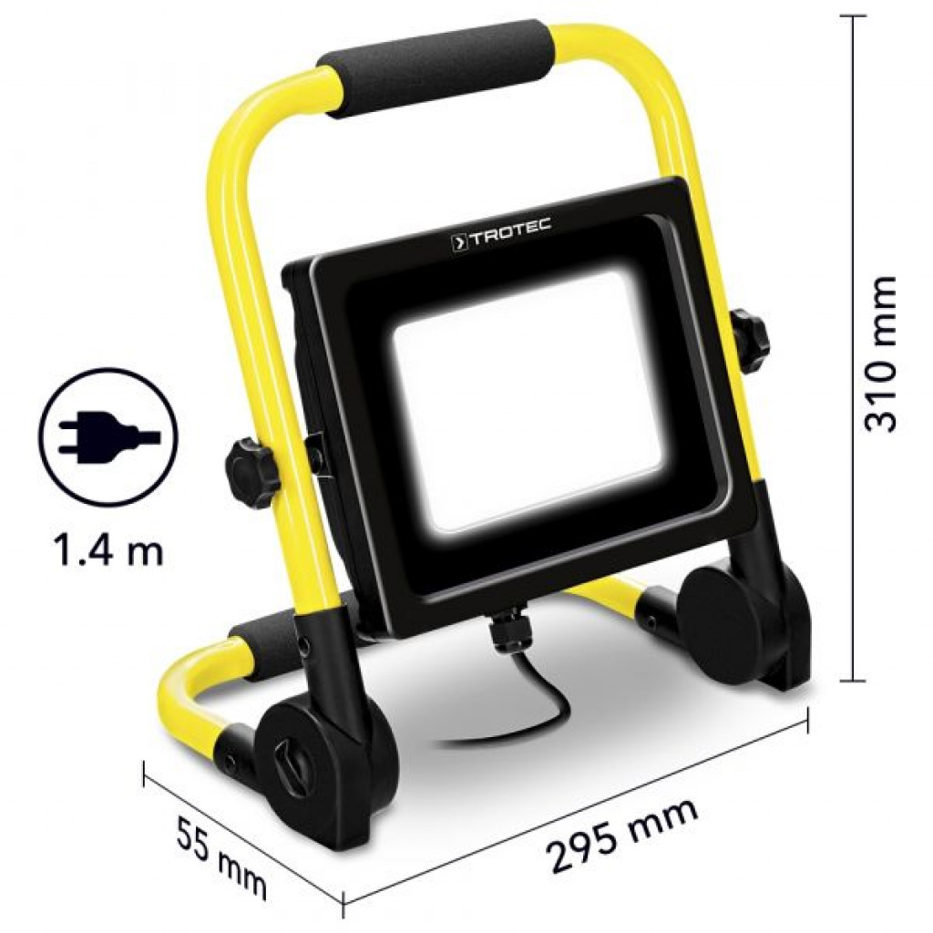 LED građevinski reflektor, težak samo oko 1 kg, ima veliku svjetlosnu snagu i veliku svestranost u upotrebi u najmanjim prostorima. Zahvaljujući visokom stupnju zaštite prema IP65, profesionalni reflektori također su idealni za vanjsku upotrebu u vjetru i vremenu. Sklopljen, lagan, opremljen naponskim kabelom duljine 1,4 m, udobno se uklapa u bilo koju futrolu za alat, tako da u trenu može pružiti dnevno jako svjetlo u lošim uvjetima osvjetljenja.