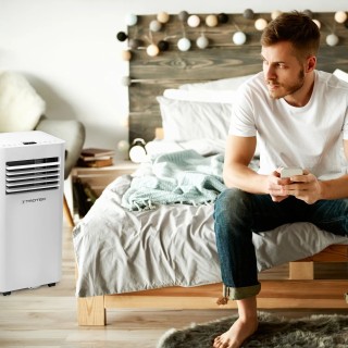 Spavaća soba, gostinjska soba, kućni ured – PAC 2020 E je Trotec prijenosni klima uređaj za sve koji žele lako rashladiti malu prostoriju, bez tehničara, bez vanjske jedinice i bez odobrenja stanodavca. S rashladnim kapacitetom od 2 kW (7000 BTU/h), dizajniran je za prostorije do 26 m² i kombinira hlađenje, odvlaživanje i ventilaciju u kompaktnoj jedinici.