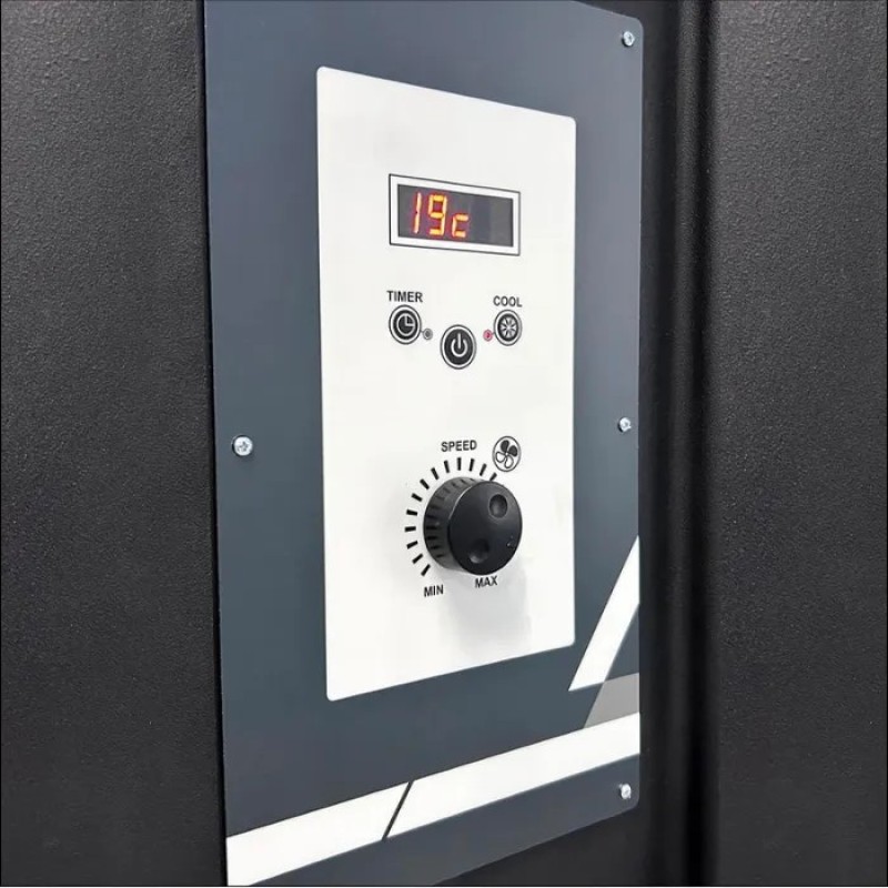 Snažna zapremina vazduha 38.000 m3/h za hlađenje velikih radnih površina. Nema instalacije, nisu potrebni kanali, niti odvodna grana. Samo priključak za struju i voda u rezervoaru. Niski tekući troškovi. Lako se održava. Filter jastučići za isparavanje blokiraju prljavštinu. UV lampa, dezinfikuje vodu (uključeno), Automatsko snabdevanje i kontrola vode u rezervoaru. Ekstremno MALA POTROŠNJA energije, svega 1,3kW, za rashlađivanje velikih površina do 520m2.
