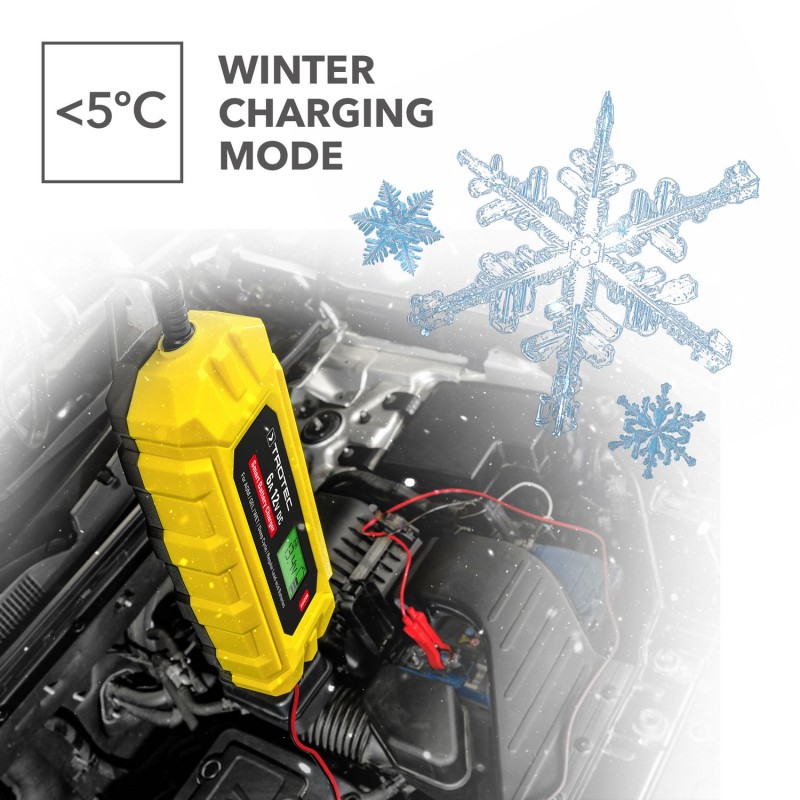 Suvremeni akumulatori (olovni, AGM i gel) iznimno su osjetljivi na temperaturu. Ako temperatura okoline padne ispod 5 °C, usporavaju se kemijski procesi u olovnom akumulatoru. Zatim se preporučuje zimski način punjenja za brzo punjenje 12 V baterija u hladnim okruženjima (-20 °C do +5 °C) s povećanim naponom na kraju punjenja.