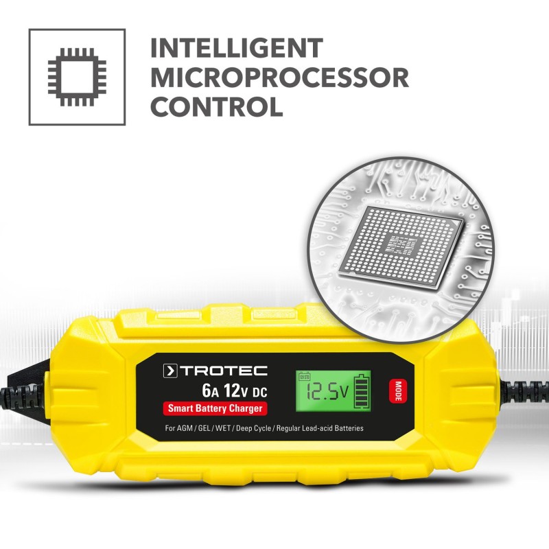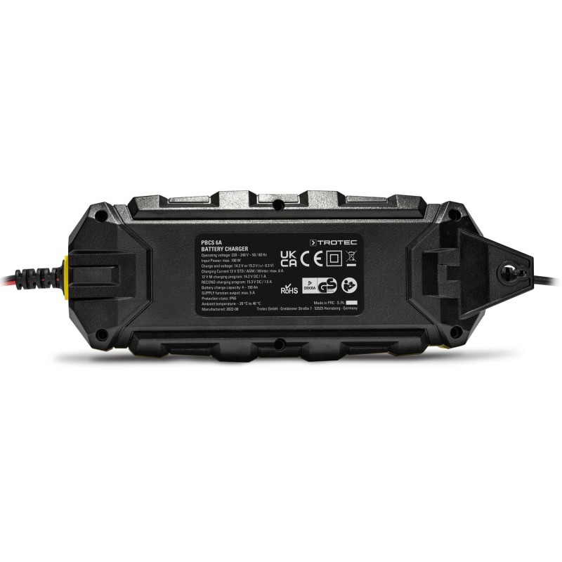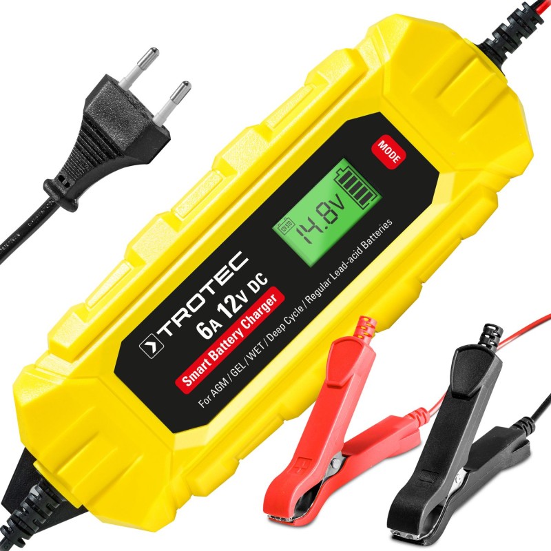 Trotecovi punjači baterija serije PBCS nude vam pravi punjač za svaki tip vozila. Prijenosni punjač baterija PBCS 6A sa strujom punjenja od 6 ampera i LC zaslonom s pozadinskim osvjetljenjem je sveobuhvatni punjač s mikroprocesorskim upravljanjem i ciklusom punjenja u 10 stupnjeva. Bilo za brzo punjenje, obnavljanje nakon dubokog pražnjenja ili zadržavanje svih postavki prilikom mijenjanja baterija - PBCS 6A se preporučuje zahvaljujući svojoj izvanrednoj kompletnoj opremi za brigu o 12 voltnim baterijama između 4 Ah i 150 Ah, npr. B. za automobile/SUV, motocikle, traktore ili motorne čamce. Podržane su i 12V baterije koje ne zahtijevaju održavanje i one koje ne zahtijevaju održavanje, uključujući mokre baterije kao što su olovne baterije, Ca/Ca i EFB baterije, kao i gel i AGM baterije. Prilagođen tehnički visoko razvijenim i snažnim baterijama modernih vozila, punjač nudi niz mehanizama tehničke zaštite i održavanja te osigurava brzo, nježno punjenje kako bi baterija što dulje trajala u punoj snazi.