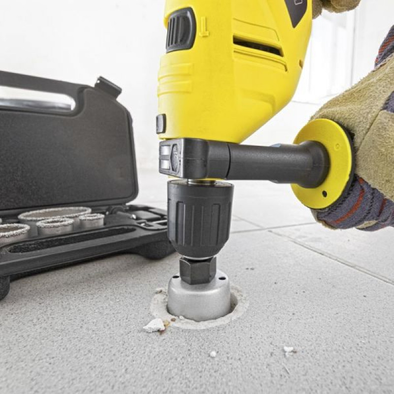 Visokokvalitetni set za piljenje od karbida omogućava kućama i obrtnicima da lako naprave kružne izrez dubine rezanja do 25 mm iz pločica, kamena, gaziranog betona i žbuke. Bez potrebe za kupnjom dodatnog električnog alata - jednostavno uz postojeću bušilicu. Posude za pile za rupe uključene u standardni opseg isporuke učvršćuju se kao i obično u stezaljku ručne ili stojeće bušilice. Pitanje prikladne veličine pile za rupe također se ne postavlja kod ovih setova. Asortiman već sadrži najčešće promjere koji su potrebni za radove obnove i preuređenja na gradilištu, kao i za namještaj ili unutarnju opremu. Otpakirajte, označite bušotinu, a ostatak je gotovo učinio sam. Oštri zubi oboda pile lako režu materijal koji se obrađuje i osiguravaju čiste kružne rezove.
