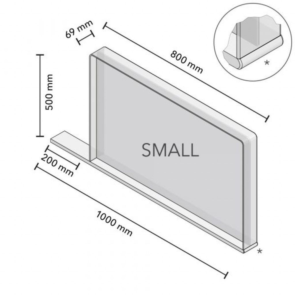 Školsko zaštitno akrilno staklo malo 800 x 69 X 500