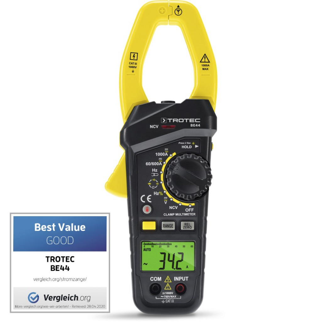 Osim toga, tester vam omogućuje mjerenje struja do 1000 A u istosmjernom i izmjeničnom području, kao i određivanje istosmjernog napona do 1000 volti, koje je moguće podesiti ručnim ili automatskim odabirom raspona. Budući da se, primjerice, može provjeriti i DC struja u automobilu, strujna stezaljka BE44 je idealan mjerni uređaj za strastvene proizvođače automobila i profesionalce u automobilskom sektoru.