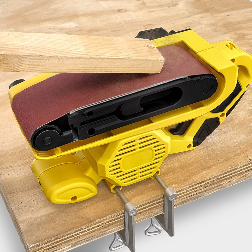 Daje vašim projektima savršenu završnicu - mobilna i stacionarna tračna brusilica od 900 W s držačem, vrećicom za prašinu i drvenom brusnom trakom