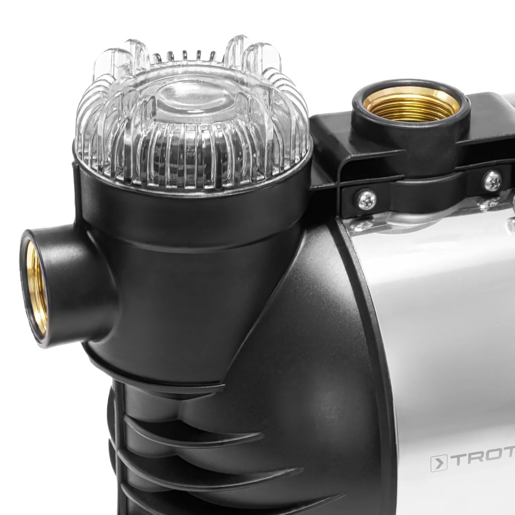Kućište pumpe od nehrđajućeg čelika, osovina od nehrđajućeg čelika i mesingani navojni spojevi obilježja su dugotrajne kvalitete. Zahvaljujući ručki za nošenje i pripremi za fiksnu podnu ugradnju, pumpa se može koristiti i mobilno i stacionarno putem crijeva ili cijevi.
