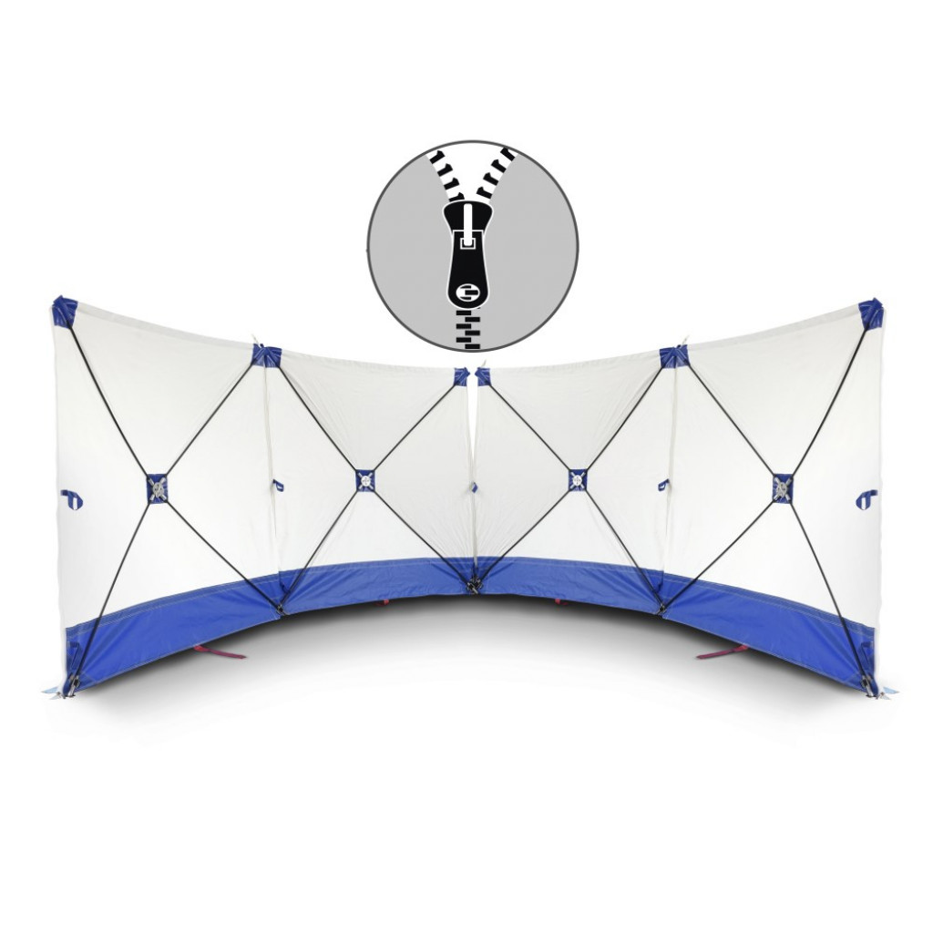 Svaki zaslon privatnosti VarioScreen sastoji se od 4 zidna elementa (180 x 180 cm). Standardno je pričvršćen patentnim zatvaračem na početku i na zidu radi jednostavnog i brzog povezivanja s ostalim zidovima. Za još veću fleksibilnost, svaki element zida može se po želji opremiti dodatnim patentnim zatvaračima.