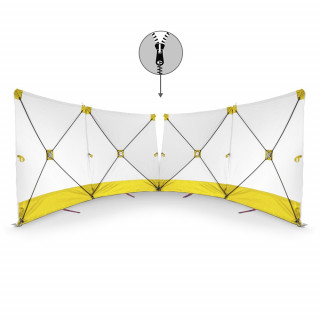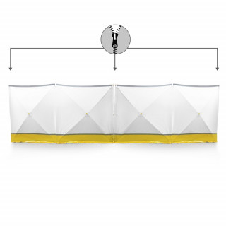 ProširivoSvaki zaslon privatnosti VarioScreen sastoji se od 4 zidna elementa (180 x 180 cm). Standardno je pričvršćen patentnim zatvaračem na početku i na zidu radi jednostavnog i brzog povezivanja s ostalim zidovima. Za još veću fleksibilnost, svaki element zida može se po želji opremiti dodatnim patentnim zatvaračima.